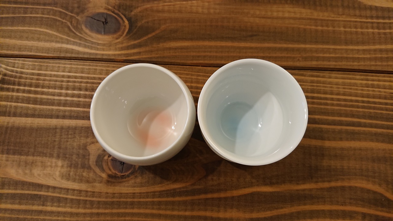 ぴったりフィットする形が愛らしく、底はほんのりと色づいています。